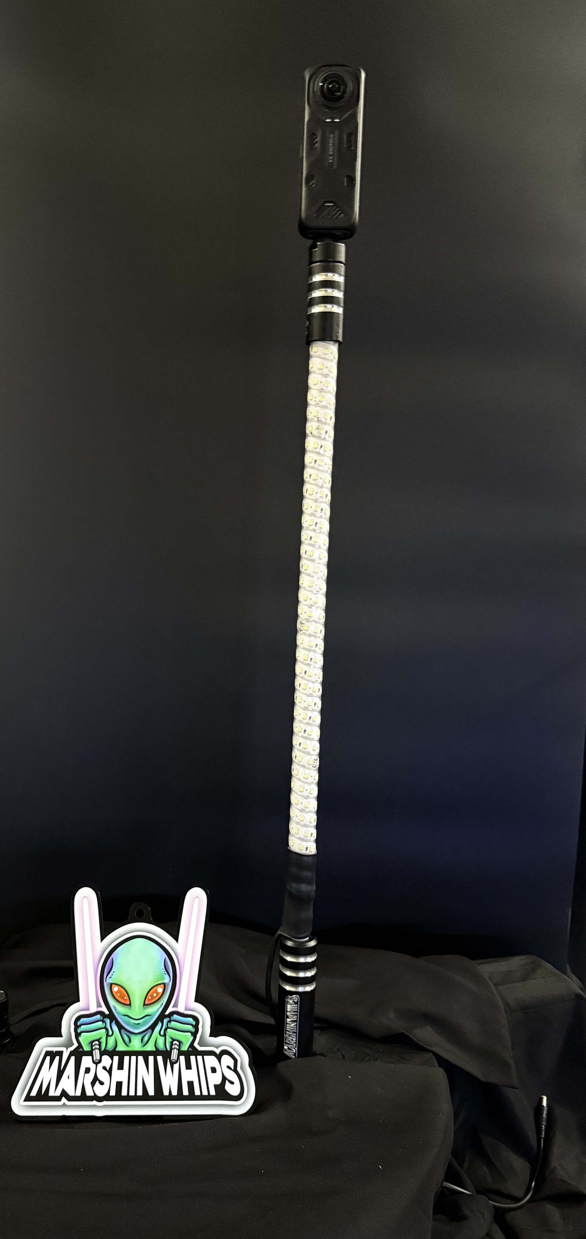 Introducing our insta360 whip, full 2 ft Game Changer rod and base to support the camera. Comes with white on white led.